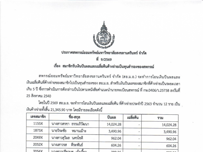 สารประชาสัมพันธ์ สหกรณ์ออมทรัพย์มหาวิทยาลัยสงขลานครินทร์ จำกัด ฉบ...(ดู : 5,126)