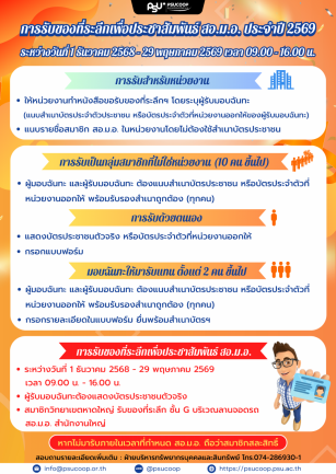 ขอเชิญสมาชิกลงคะแนนสรรหา คณะกรรมการดำเนินการ สอ.ม.อ. ประจำปี 2569 วันศุกร์ที่ 19 ธันวาคม 2568 เวลา 08.30 - 15.30 น.