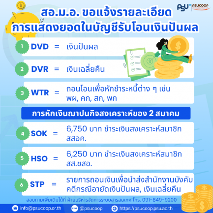 รายละเอียดการแสดงยอดในบัญชีรับโอนเงินปันผล