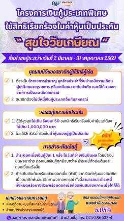โครงการเงินกู้ประเภทพิเศษ ใช้สิทธิเรียกร้องในค่าหุ้นเป็นประกัน “ สุขใจวัยเกษียณ ”