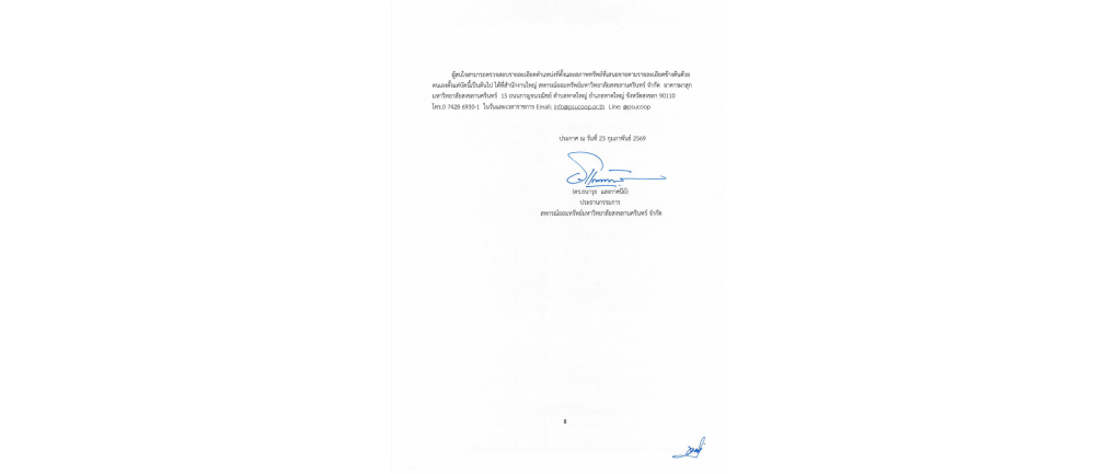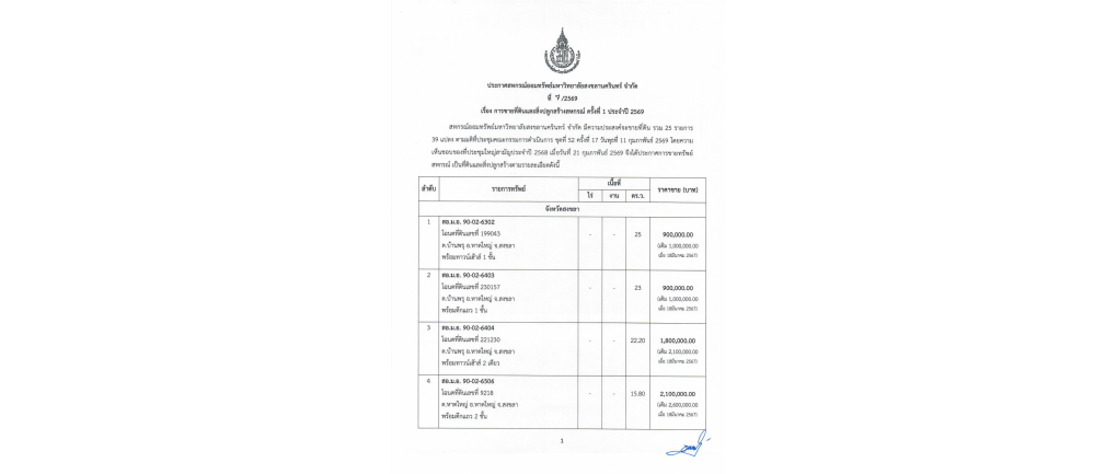 ประกาศ สอ.ม.อ. ที่ 7 - 2569 เรื่อง การขายที่ดินและสิ่งปลูกสร้างสหกรณ์ ครั้งที่ 1 ประจำปี 2569